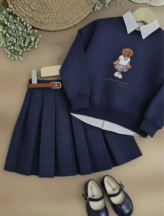 دوتبکه بلوز ودامن تدی جنس بلوز دورس دونخ باکیفیت وجنس دامن کرپ مازراتی گرم بالا