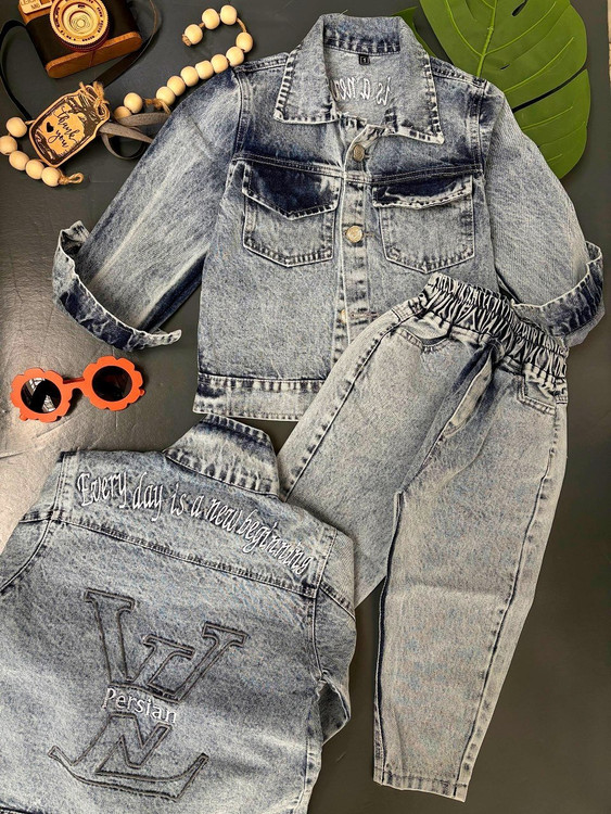 ۲ تیکه لی نقلی کار شده پشت کت گلدوزی شلوار مام استایل سایز کم یاب جنس لی درجه یک و ضمانتی