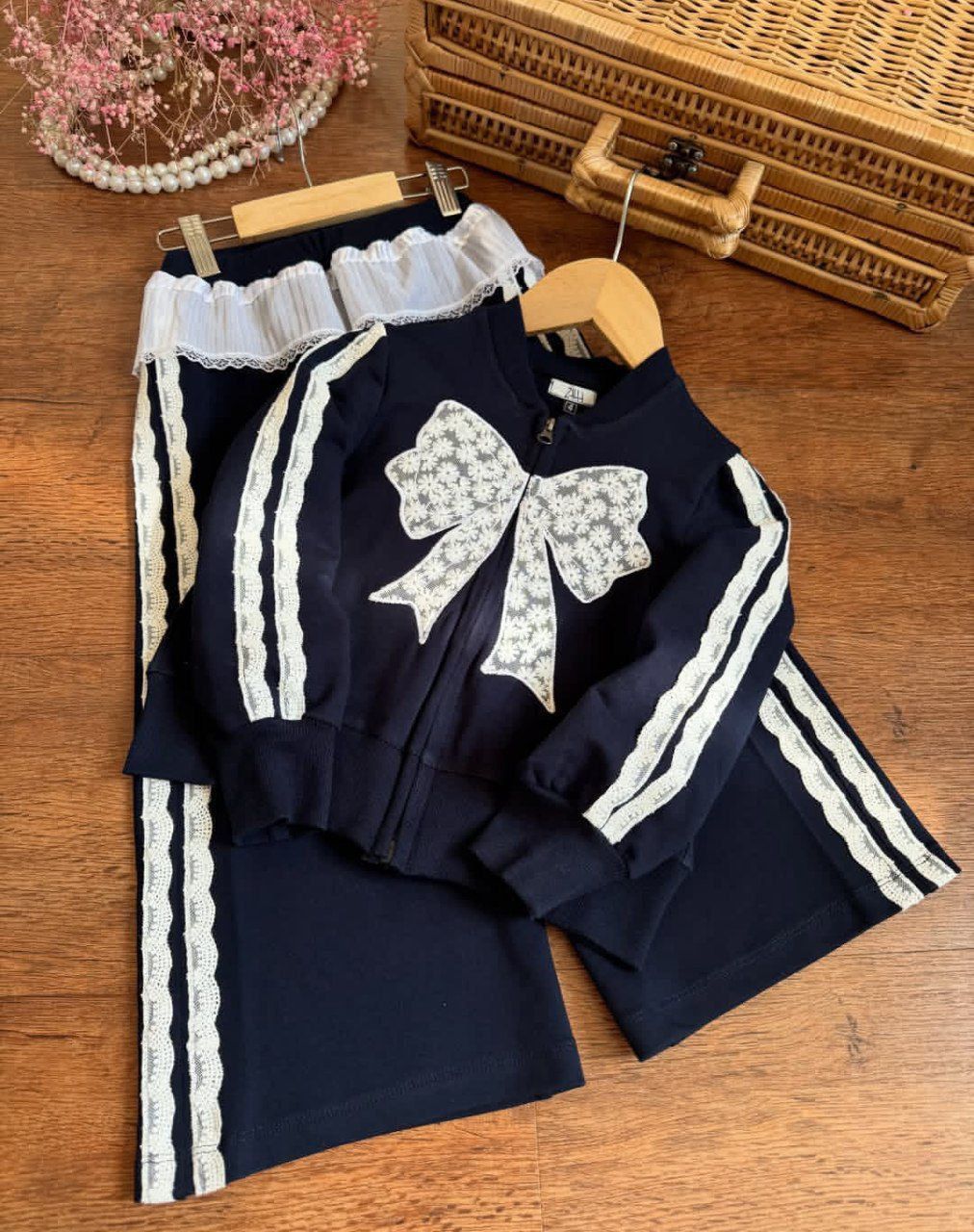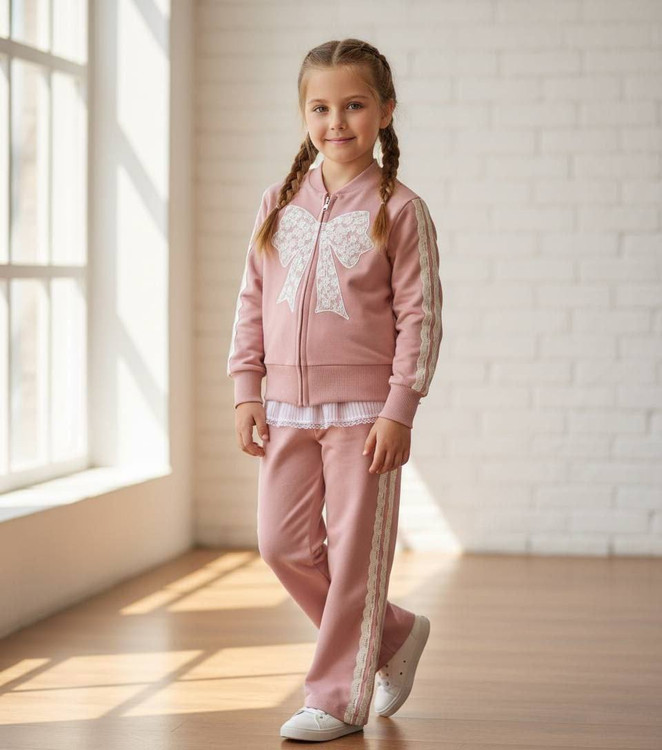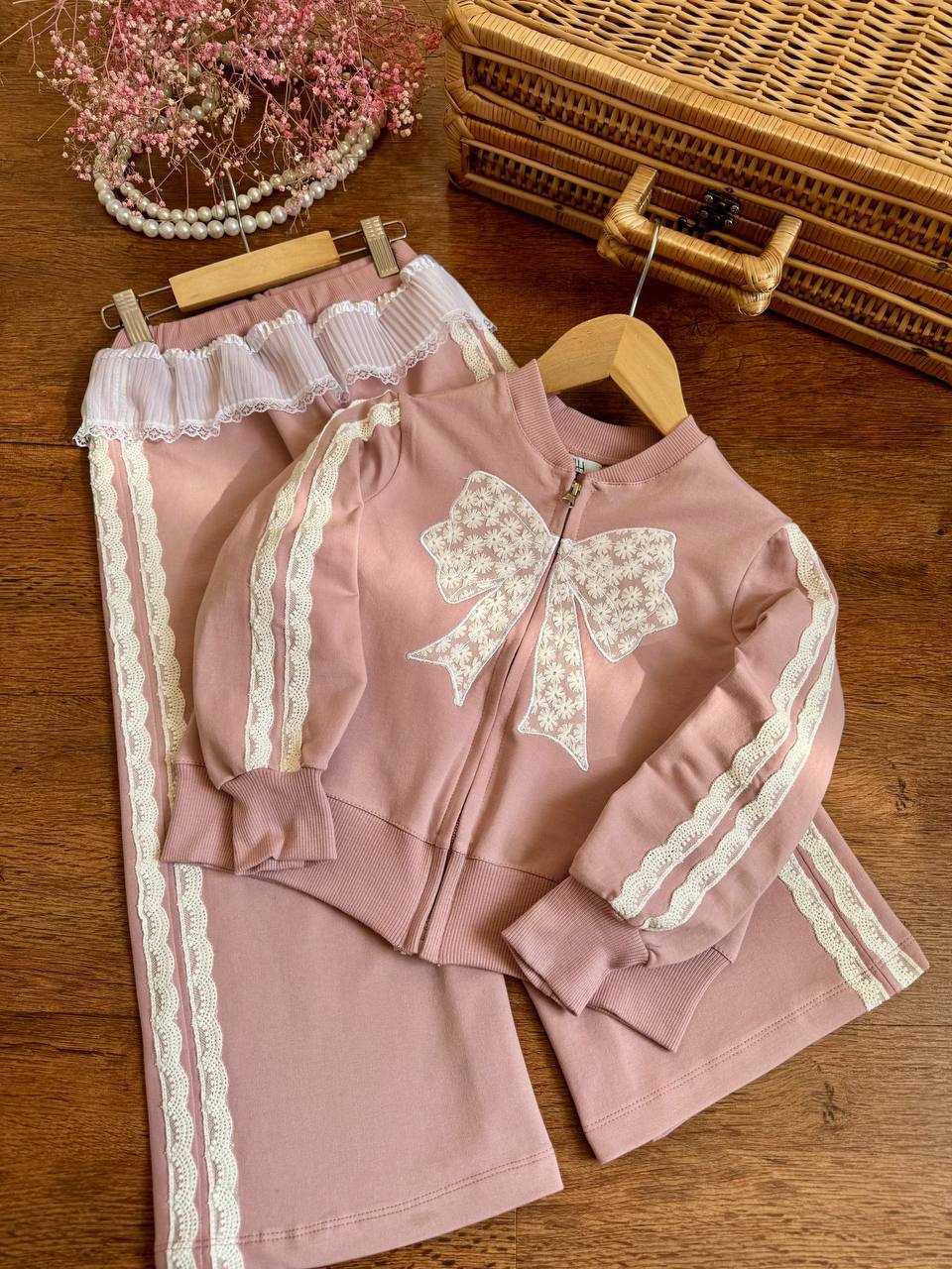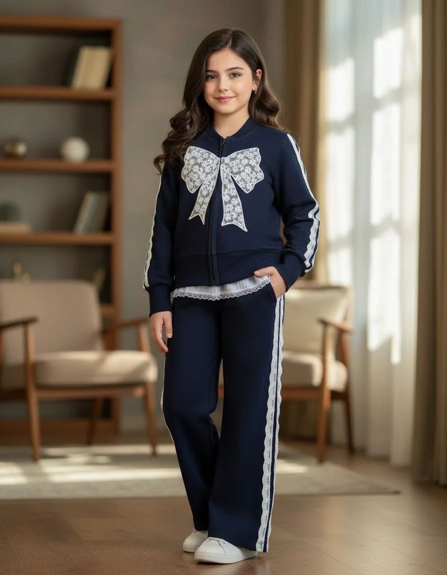 🎀🎀 ست سویشرت و شلوار دخترانه پاپیون گیپوری ✨