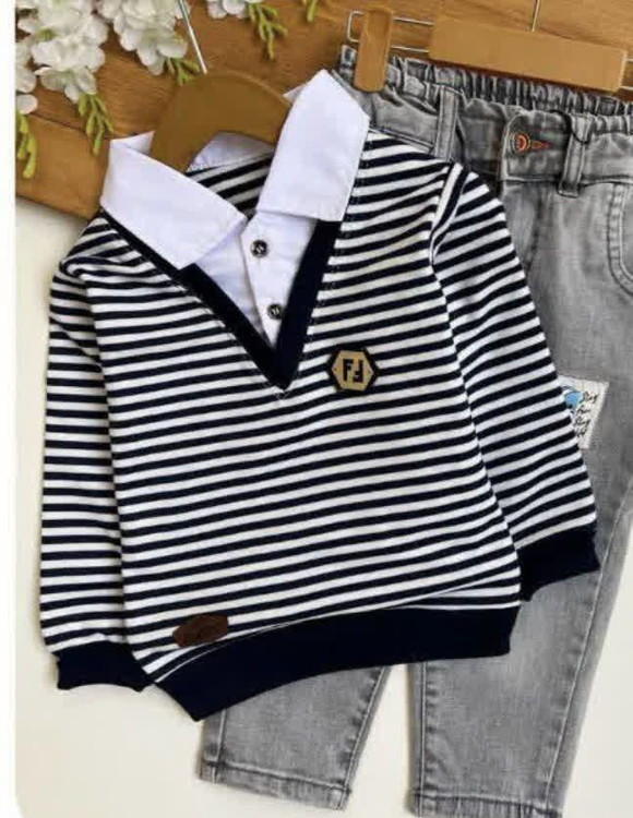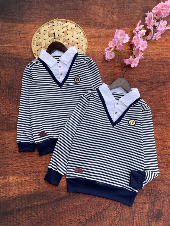 بلوز تک پسرونه یقه دار راه راه